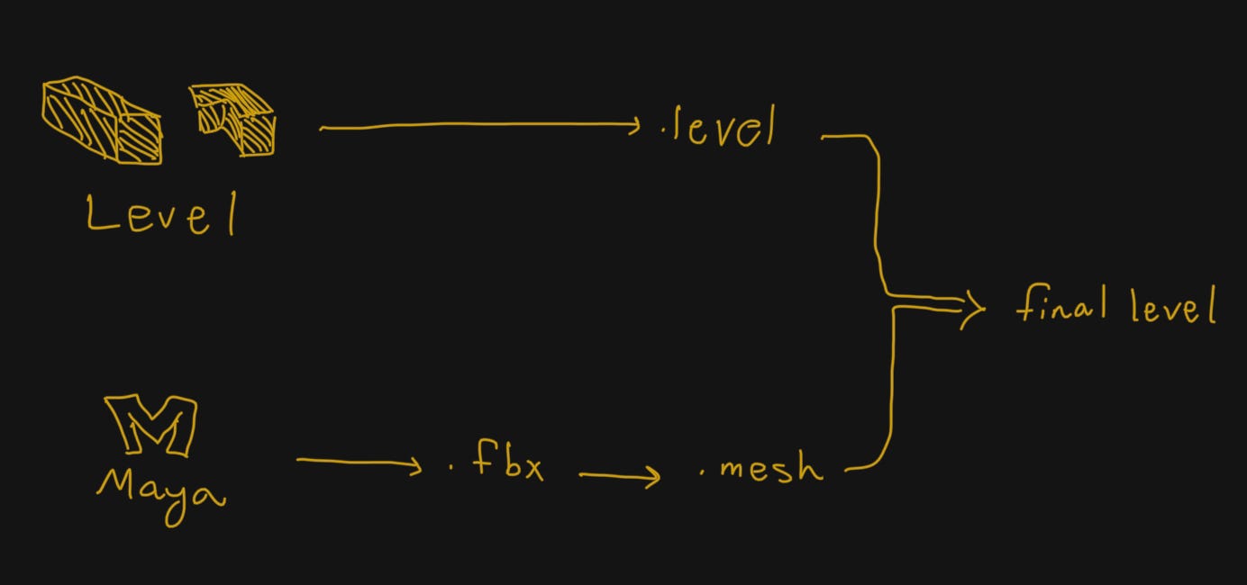 Now the level designer doesn’t have to wait for the artists to make the levels, and the artists don’t have to wait for the level designer to make levels.